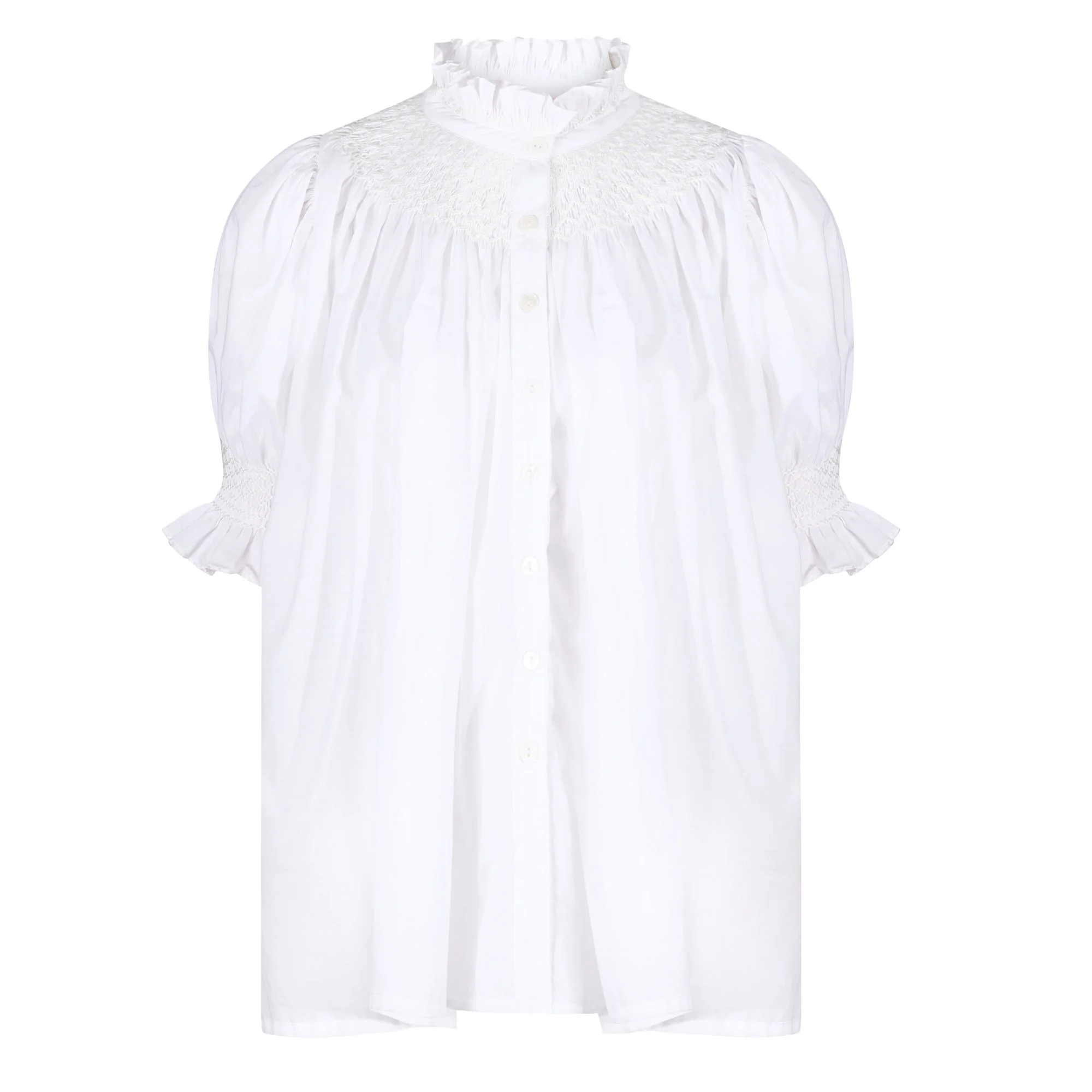 Scholl Women's Summer Blouse White with Ivory Hand Smocking Edition 9